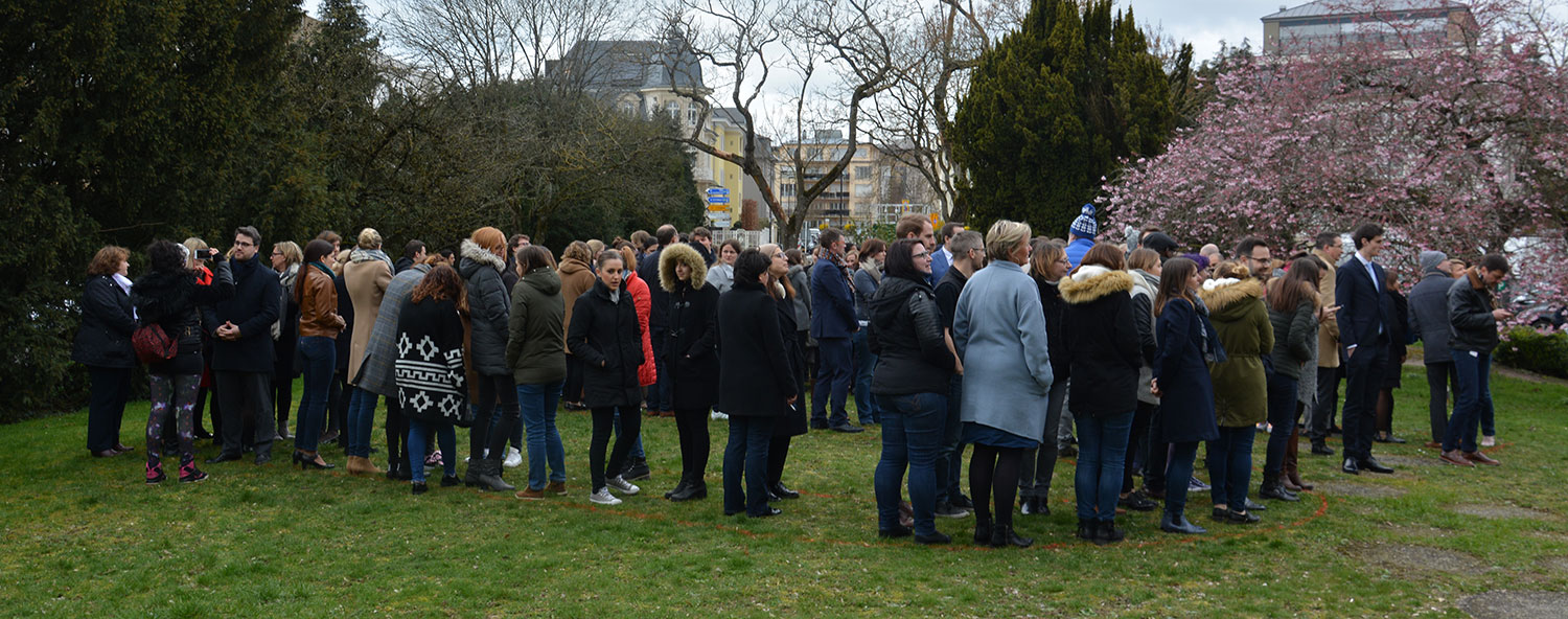 In support of the conference, we organised a flashmob along with other companies in our neighbourhood, involving some 200 people on 25 March. Participating offices were Axa Assurances, Luxembourg Stock Exchange, Clifford Chance, Delvaux Notary Public, Fondation Elisabeth Stëftung, LetterOne, the Ministry of Health and the Ministry of Equal Opportunities.