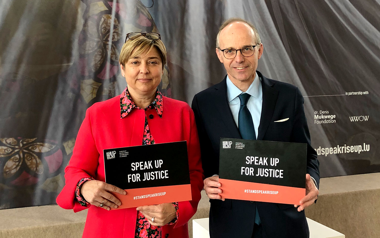 On 26 - 27 March 2019, at the inaugural Stand Speak Rise Up! international conference in Luxembourg, HRH The Grand Duchess convened leaders from the national and international community and from public, private, NGO, legal and academic sectors. This event created a platform to connect stakeholders and survivors of sexual violence as a weapon of war to build new partnerships, scale existing efforts, and identify innovative and lasting solutions.